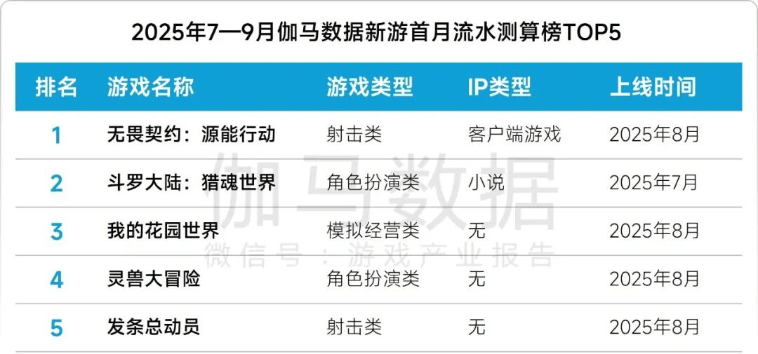 新游方面,Q3吸金最强的手游是8月上线的腾讯射击新游《无畏契约:源能行动》,位于新游流水测算榜首,是Q3最成功的新品。