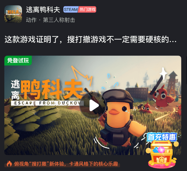 喜欢搜打撤玩法的玩家,最近应该都有关注到一款叫做《逃离鸭科夫》的游戏的上线。