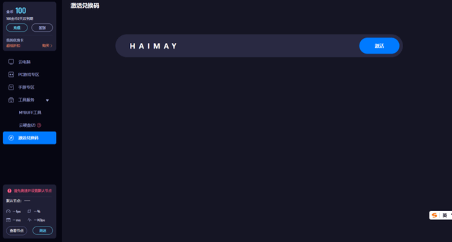 而且现在海马云电脑还有白嫖活动可以参与,我们只需要在客户端左侧的口令兑换栏,输入口令“HAIMAY”就可以获得免费的游玩时长,玩家可以先体验效果,然后再考虑是否入手,也是相当方便的。