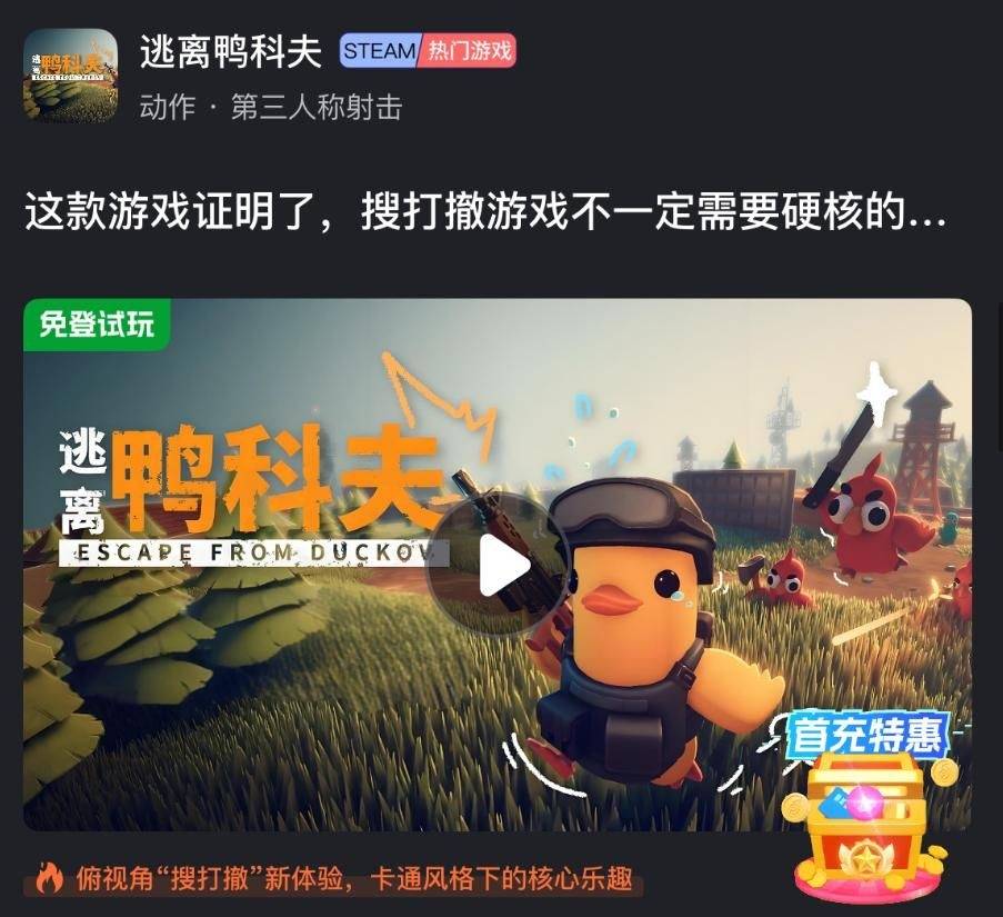 第一次闯进《逃离鸭科夫》的零号区域时,我盯着满地罐头和零件犯了难,这颗生锈螺丝钉和半瓶苏打水,到底哪个更值钱?直到死在撤离点门口才后知后觉,随手丢掉的“小垃圾”竟是能换全套装备的硬通货。这款被玩家戏称为“鸭子版塔科夫”的国产游戏,上线首周就卖爆百万份,Steam好评率稳在96%以上,峰值20多万玩家同时在线,连我这种不爱硬核射击的人都成了“熬夜捡垃圾专业户”。