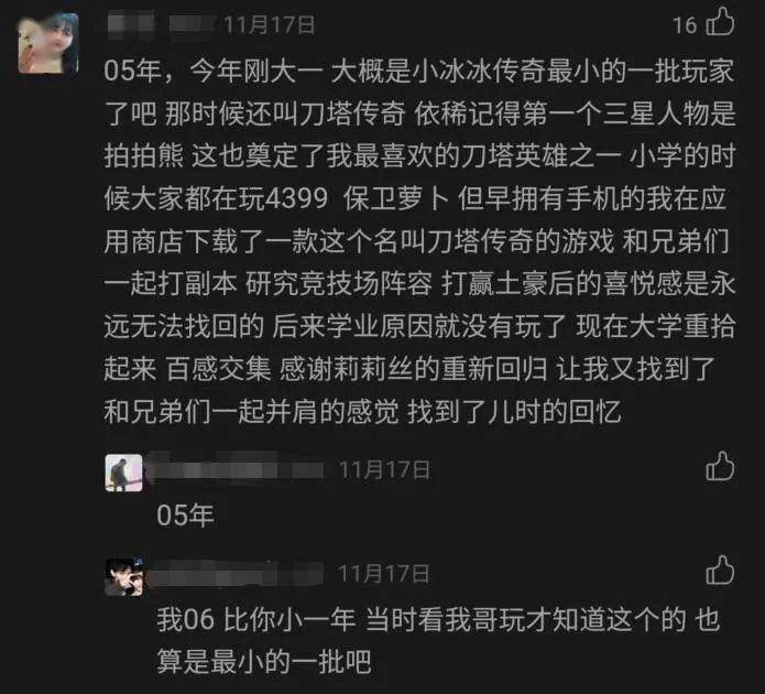 甚至有05后玩家也参与了怀旧话题,让评论区的其他“真中年人”汗颜。