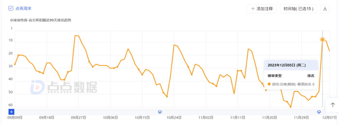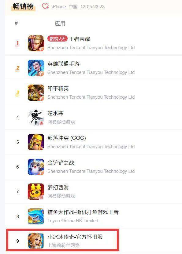 然而出人意料的是,前几天,我在整理今年新游戏数据的时候,发现《小冰冰传奇》官方怀旧服出现在了畅销榜前十的位置——不但活着,活得还很不错?