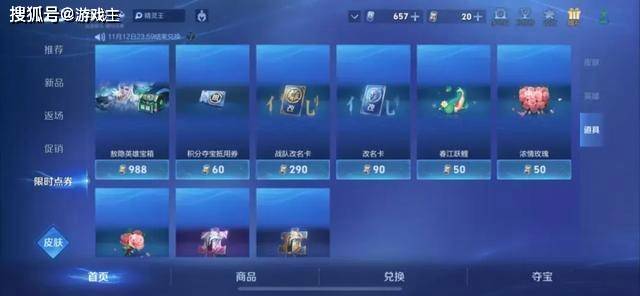 在限时点券商城的道具栏里,还可以兑换积分夺宝券和皮肤碎片。