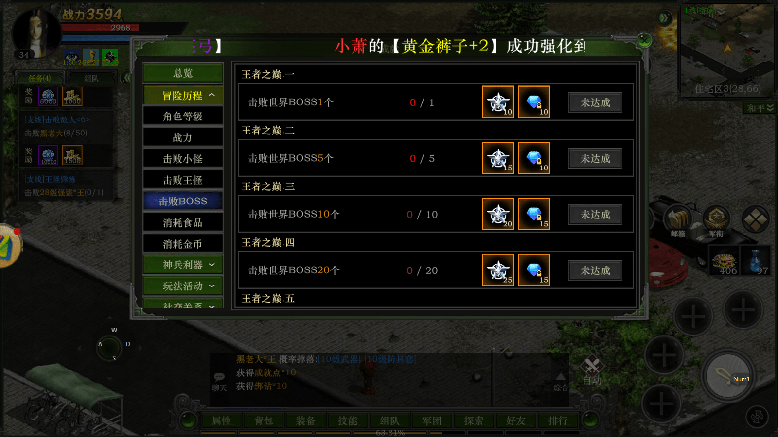 并且在此次更新中,也优化了世界boss,提供刷新时间,地点以及推荐战力,世界BOSS分为击杀奖励以及个人排名奖励,击杀奖励可获得特装碎片以及紫色系列装备,刷新时间为每日17点,每一百级分为一个世界boss。