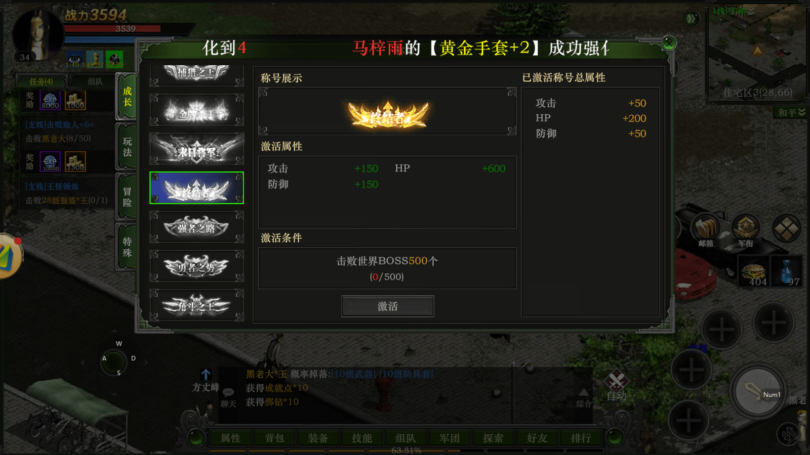 本次优化中,增加了称号系统,完成任务可解锁称号,激活称号即可提高属性,穿戴没有属性,如不喜欢称号可以选择不进行佩戴!