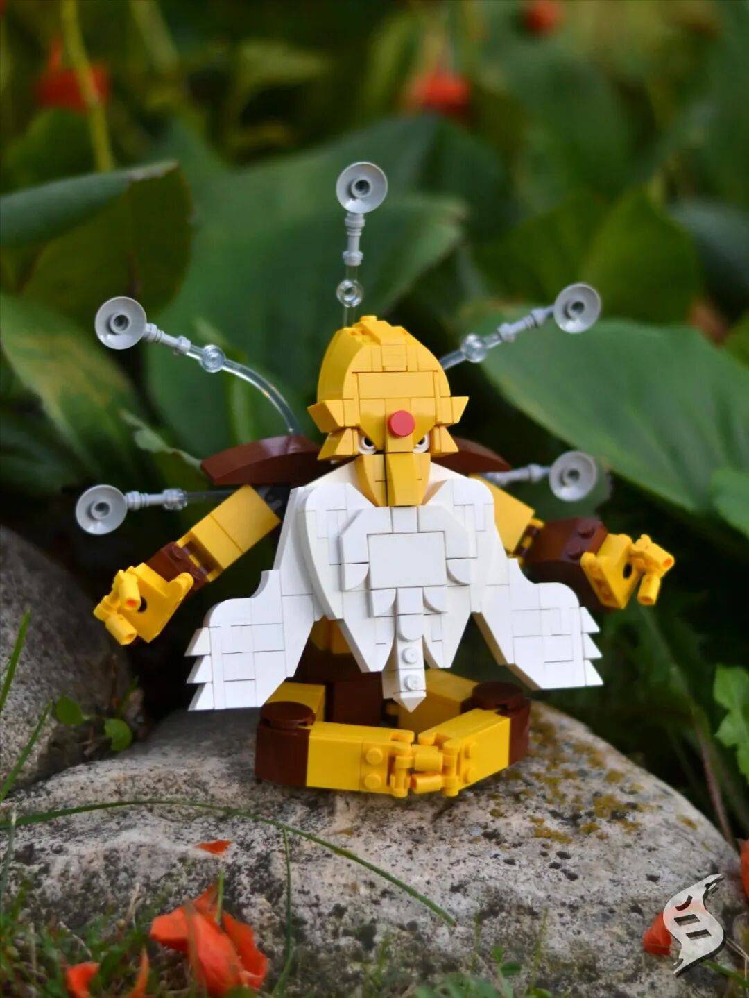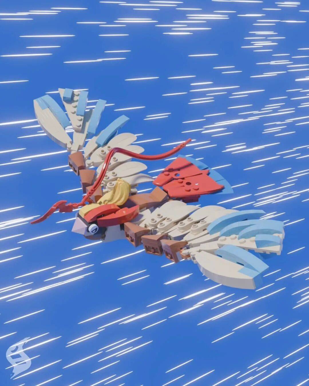 curiositybricks 使用了不少巧妙的零件,比如布质披风与冲浪板拼出的尾羽,让一只原本平平无奇的小波波彻底觉醒,变身为超级比雕。