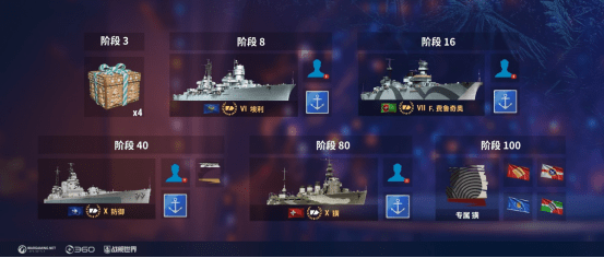 《战舰世界》为整个航路会分为两个进度条(两个进度条共用一个进度经验),第一个进度条面向所有舰长免费开放,奖励包括有煤炭、钢铁、圣诞补给箱、奥罗拉·迪·娜塔莉指挥官、VII级沙恩霍斯特 '43等等珍贵物品,其中奖励给予的圣诞补给箱提供了三种不同的规格,分别是圣诞老人的礼物、大号圣诞老人的礼物以及超大号圣诞老人的礼物,舰长们可是有机会可以从圣诞补给箱中开出稀有的高级战舰哦。第二个进度条需要花费金币才能解锁,舰长们可以在该进度条中获得额外的节日礼券、两位全新历史指挥官、VII级斯图尔'43等珍贵奖励。
