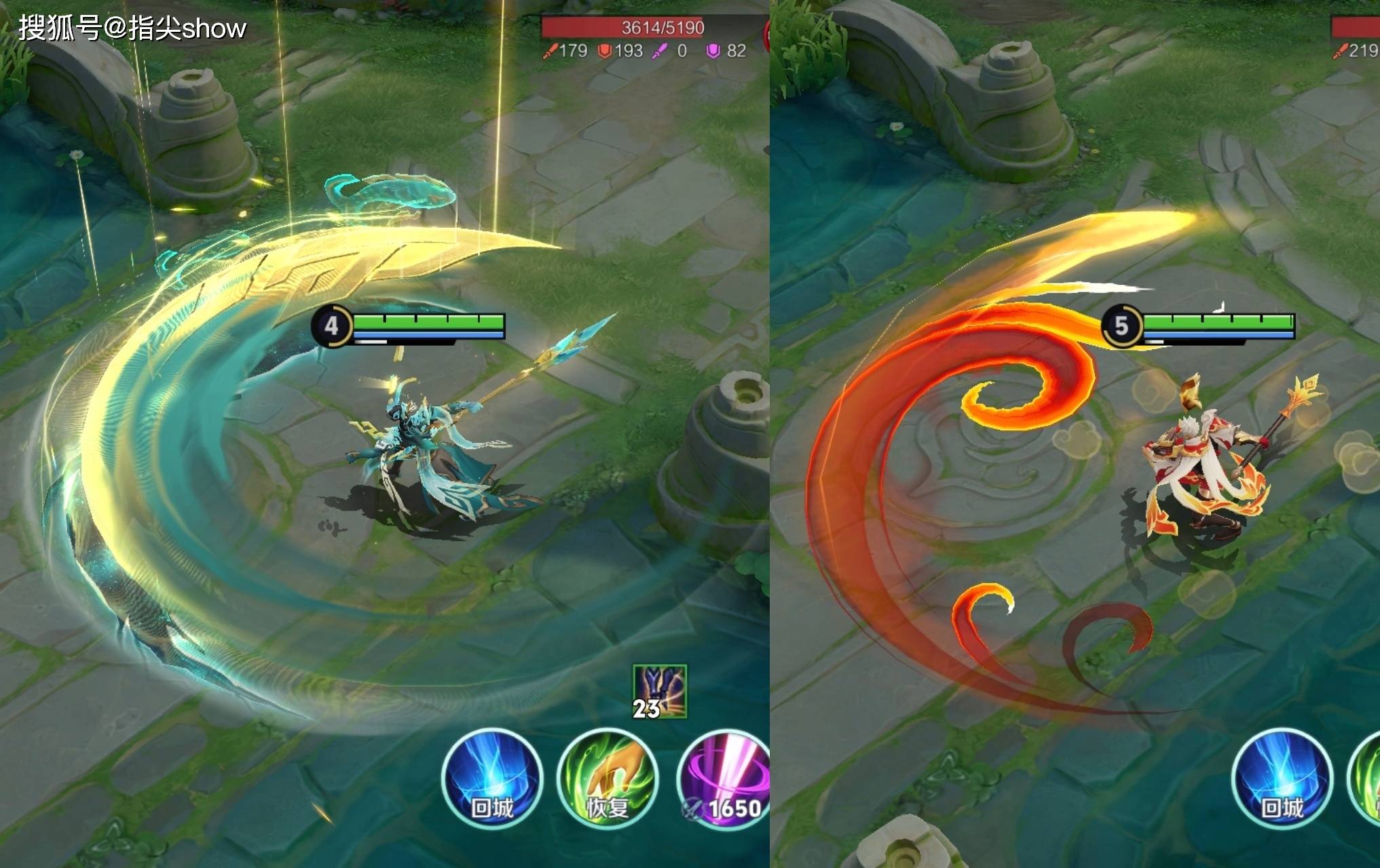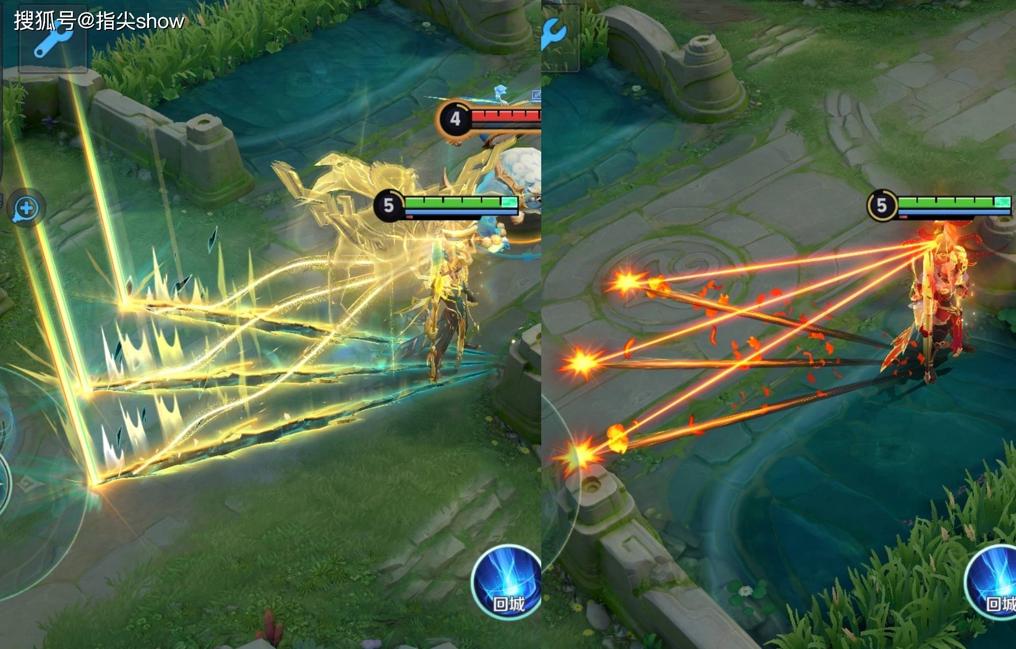二技能的特效对比,不知道大家用新皮肤的感受如何,给我的感觉就是释放的速度特别快,因为释放过程还夹杂着一些雷电的元素,甚至我都感觉快的掉帧。