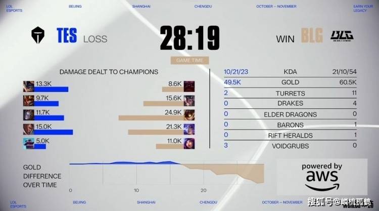 这场系列赛大家原本以为会非常的激烈,但就整个系列赛的表现来看,显然不是这样,TES在首局的前期,靠着kanavi的无敌节奏拿到了巨大的优势,让BLG的下路组合直接断开连接,结果转头的小龙团,阿水卢锡安走脸被shadow赵信捅飞秒杀,之后又在中路将TES双人组击杀,连续两波的节奏让TES的慢慢失去了优势,而到了中后期,BLG的阵容在开团上显然更加的简单,尤其是下路那波on绕后开TES四人,BLG打出团灭TES,将经济差拉开到6k,之后就是吃掉大龙,推平TES拿下首局。