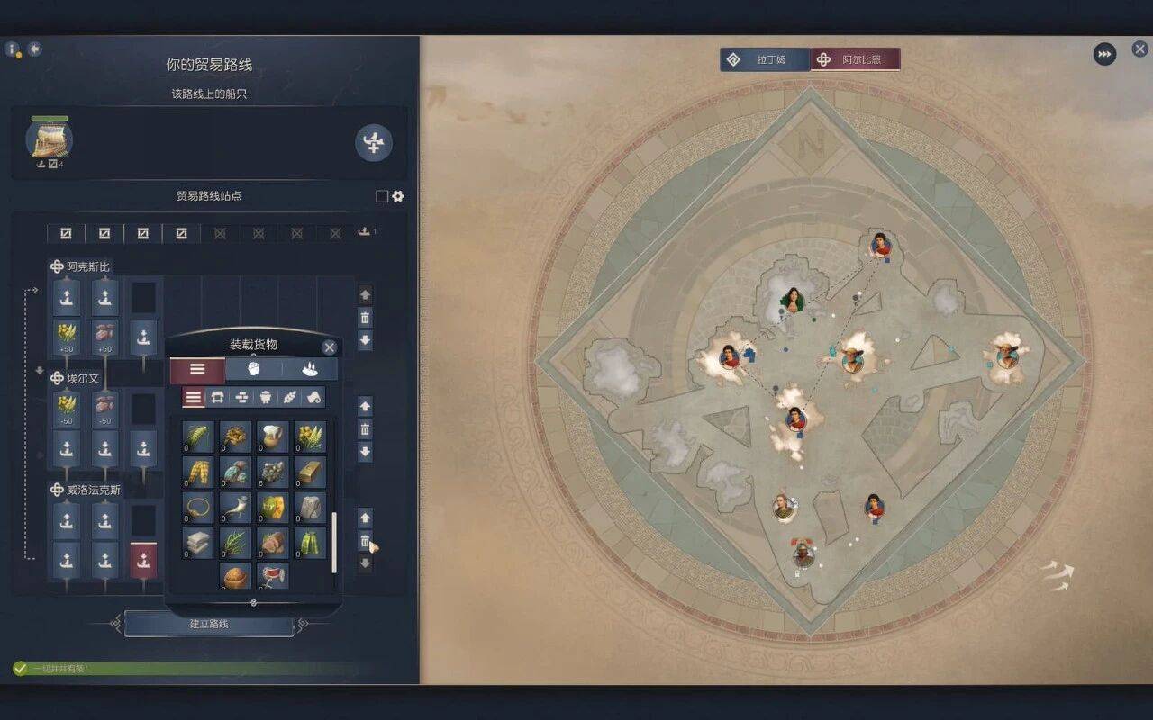 因此想生产 2 阶衣物,还必须要把黄蒿运回老家。由此便引出了船舰运输系统,我们可以自由选择航线,以及哪个岛运多少货物、放下多少货物。航线界面比较简洁直观,一番设置后,我终于搞定 2 阶各项需求。