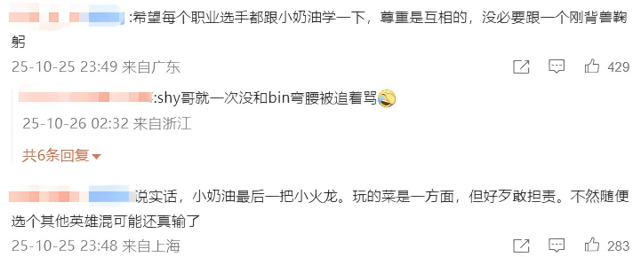 与此同时,还有细心的网友发现TES的中单选手小奶油在赛后碰拳环节,也是没给Bin弯腰,这也在网络上引发了很大的热议。