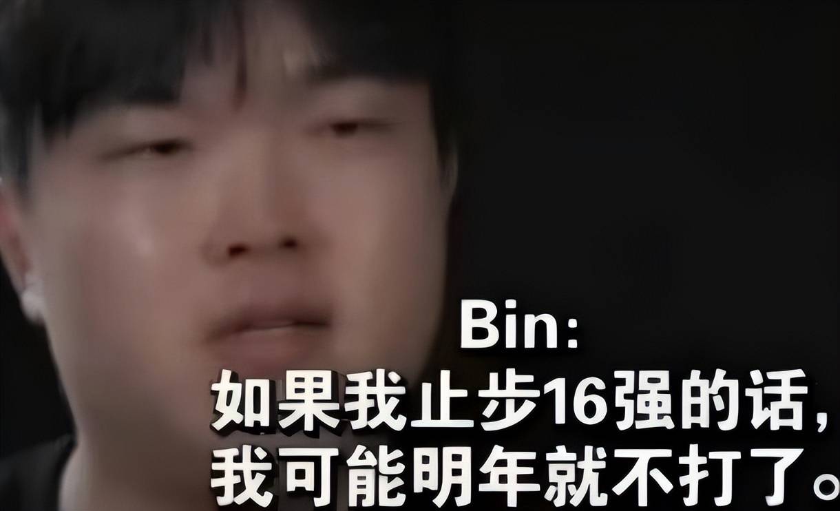 其次,Bin在去年比赛纪录片中的“如果我止步16强的话,可能明年就不打了”的言论依旧在发酵。