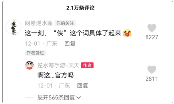《逆水寒》手游“黑工团”的事迹迅速在网上传播,让他们成为网红,也是真正意义上的大侠。