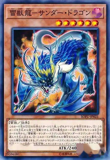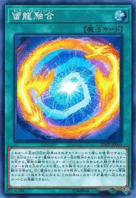 在清理场面需求较大的时候,先用【超雷龙】+手卡1雷族怪兽的方式出【雷神龙】,吃坑再用【雷龙融合】出1次,面对无效系的时候资源上不亏。