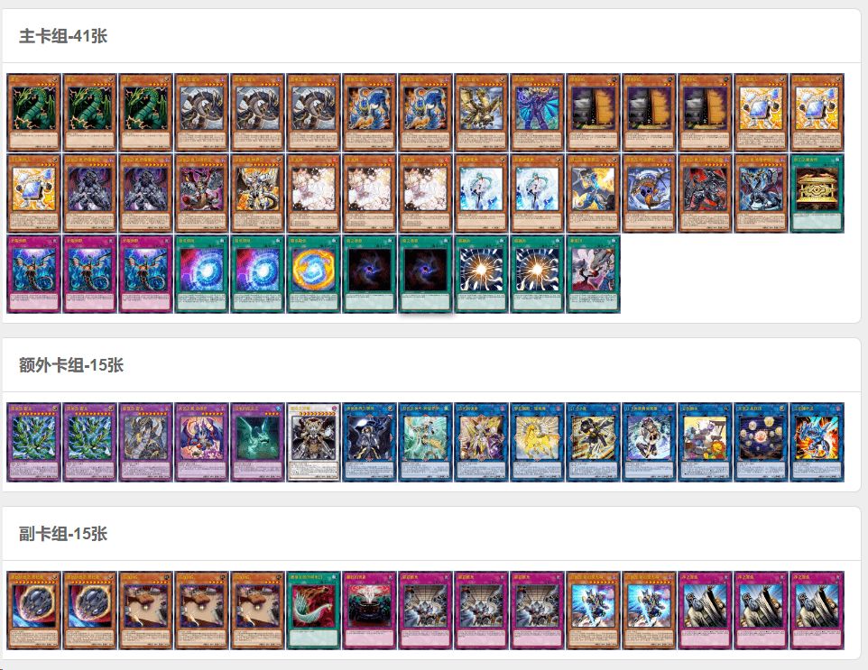 印象中使用过的竞技卡组包括【雷龙】【转生炎兽】【真龙】【恩底弥翁】【自奏圣乐】【黄金国】【调皮宝贝】【随风旅鸟】【相剑】【召唤师】。