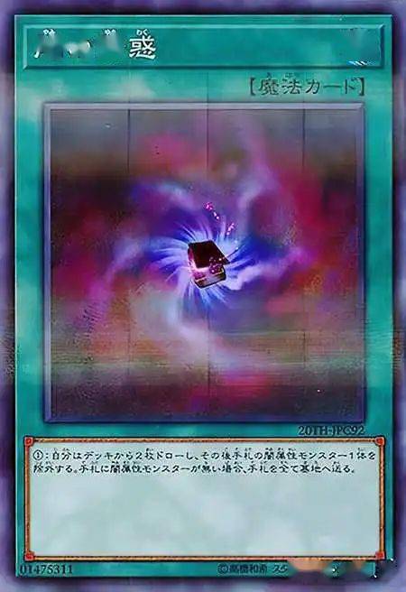 ①:对方在抽卡阶段以外从卡组把卡加入手卡的场合,把这张卡从手卡送去墓地才能发动。这个回合,双方不能从卡组把卡加入手卡。这个效果在对方回合也能发动。 |