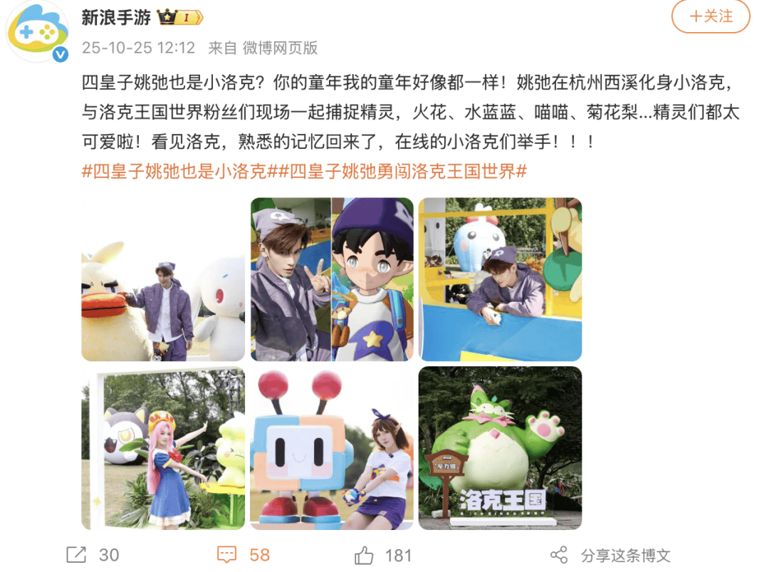 更让姬感动的是,这份热闹还从线上蔓延到了线下。10月24到26号这几天,《洛克王国:世界》联动华为、天猫在杭州西溪湿地举办了线下快闪活动,现场有好多Coser、还可以打卡人气精灵,直接把游戏里的热闹搬到了现实里!消息一出,小洛克们刷屏了各大社交媒体热搜,原来大家小时候的审美都是一样的,给了姬一点小小的洛克震撼。