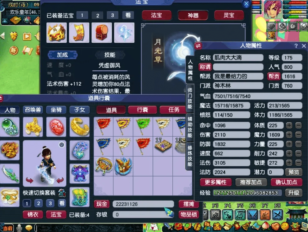 159级的缺点是跟175一样,想要效率就要投入,而且不会低,比175便宜的只有角色与宝宝,但也便宜不了特别多。175+80的底子基本都是8-9000,8红耐攻豹子5000,但是不能存经验,24.7亿衰减。玩了4年159级,已经有一个号快300亿经验了,转了两次门派,强壮神速7丹法宝都点了,就指着灵宝费经验了。