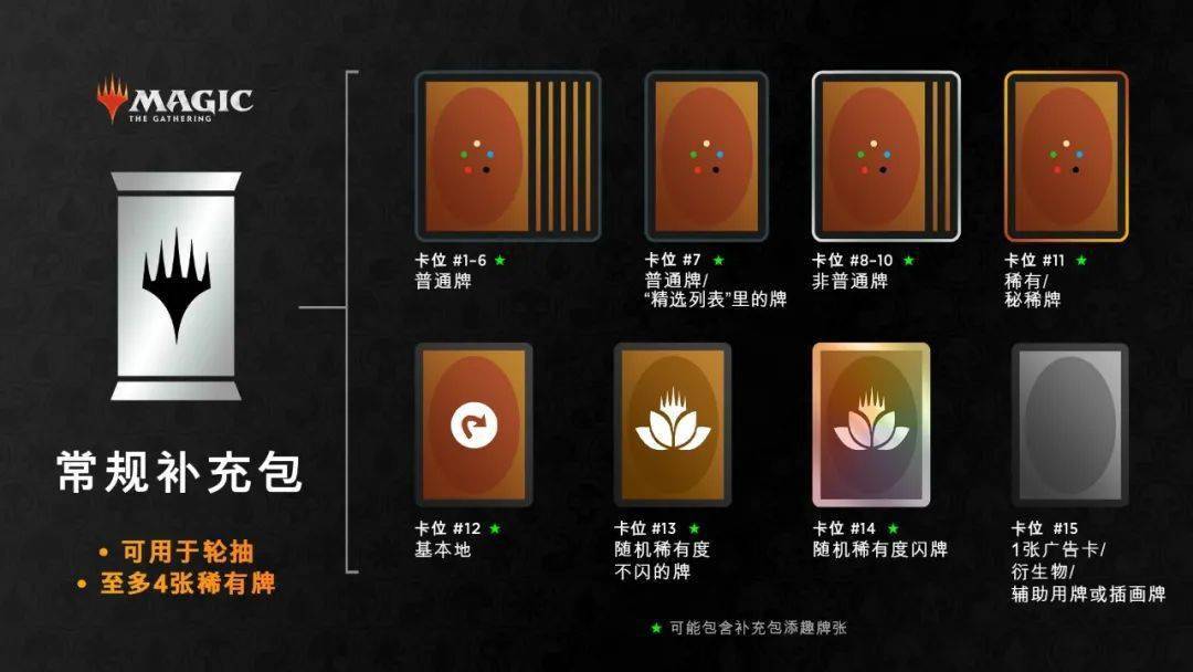 在标准赛制延长轮替时间之外,万智牌的产品线将迎来调整,轮抓补充包和系列补充包将会被全新的常规补充包替代,更为简洁的产品线让玩家能够更好的通过限制、标准、先驱、摩登、薪传乃至指挥官逐步的扩充自己的卡池。