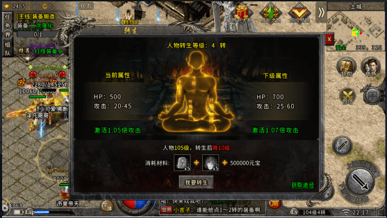 转生的材料基本是靠打怪爆,不过越高级的越难爆,要快速升级升装备属性去高级地图,转生会加基础攻击的上限和下限一级血量,不管是前期还是后期都有很大帮助