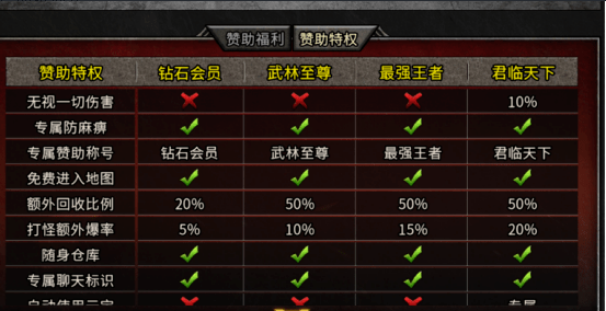前期跟随任务升级,做到泡点可以达到50级,50级就可以开始充值赞助,钻石会员10000灵符(100rmb)武林至尊20000灵符(200rmb),前期打怪买两个赞助就差不多,用完送8的经验券还有转生材料可以达到四转100级左右,有钱的最强王者也可以现在买,后期也要买。
