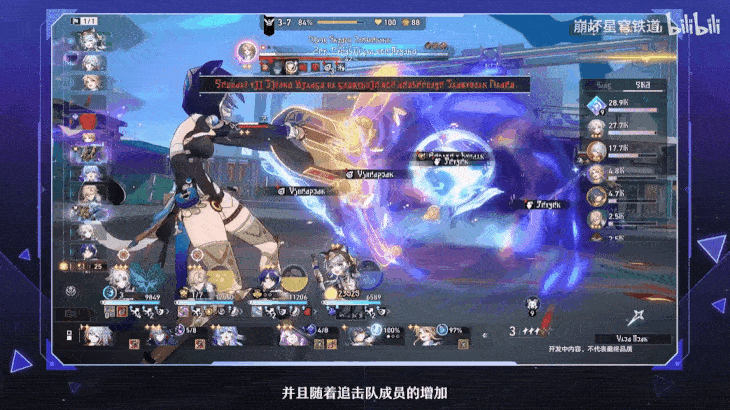 用开发团队自己的话说,这一新玩法可谓突破了星铁的“底层代码”。“货币战争”允许玩家带上十名角色进行战斗,并区分了“前台”与“后台”,角色也会由此获得不同的新能力。同时,每位角色还会被分为“仙舟联盟”或“追击”等阵营或流派,当同一阵营或流派下的角色组队时,便可以触发对应的“羁绊”效果,比如“追击”流派的羁绊,就可以让团队中角色不停追加攻击,并能对敌人发动总攻击,让战斗爽快十足。