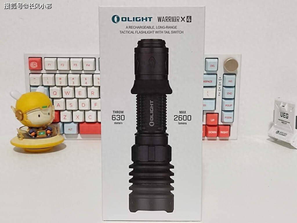 武士X4采用经典的白色纸盒包装,包装正面印有这款手电的品牌OLIGHT、型号(WARRIOR X4)、外形图以及最大性能参数:射程630米,亮度2600流明。