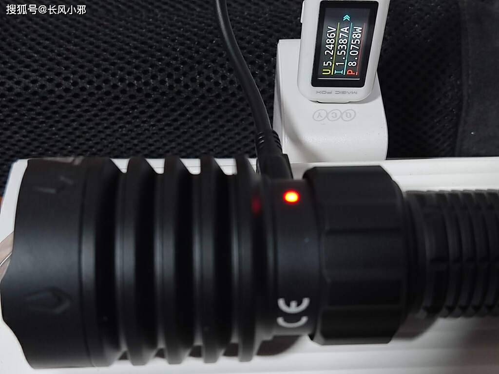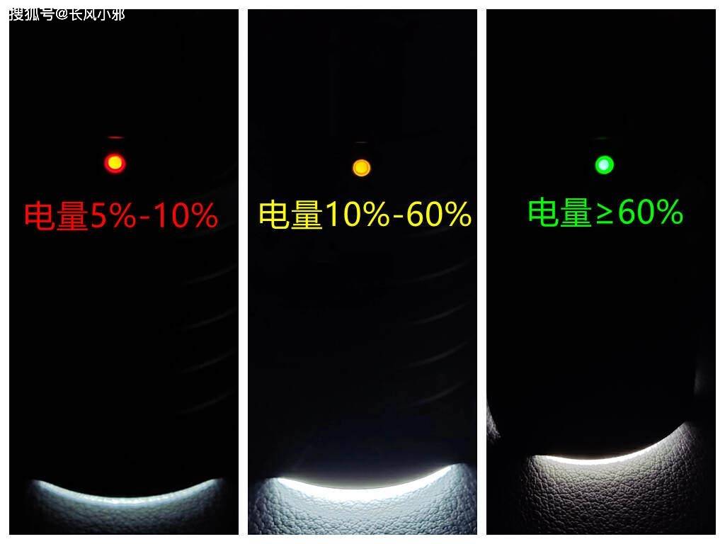 武士X4保留了上一代振动低电量提醒功能:当剩余电量不足20%时,每5分钟一次单个脉冲的振动;不足10%时,每3分钟一次两个脉冲的振动;低于5%时,每1分钟一次三个脉冲的振动。而且还增加了根据不同的剩余电量,指示灯显示不同颜色。对于非握持使用情况下,看指示灯颜色就知道手电电量了,非常人性化。若指示灯亮红灯且闪烁:电量为5-10%;若黄灯常亮:电量为10-60%;若绿灯常亮:电量为≥60%,