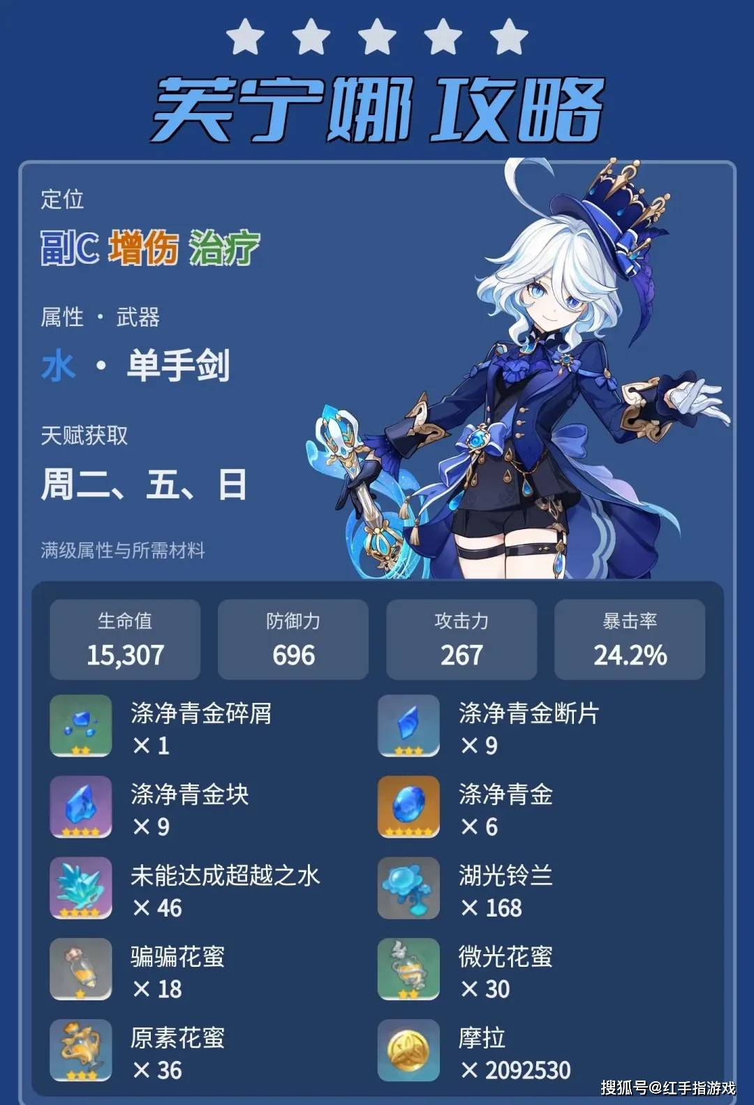 五星角色:奈芙尔(月绽放主C)、水神芙宁娜(复刻)