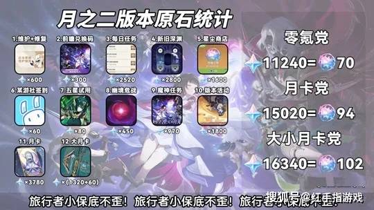 大小月卡党(月卡 + 大月卡):16340 原石,102 抽;