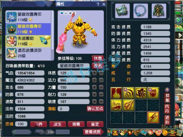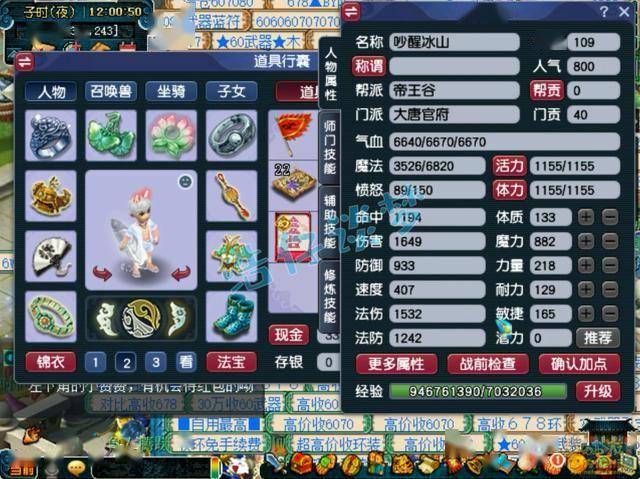 109级大唐官府全魔加点没打临时符的面板属性,打符之后能有1800左右的伤害,法伤能达到1700左右,可以说攻法双修。