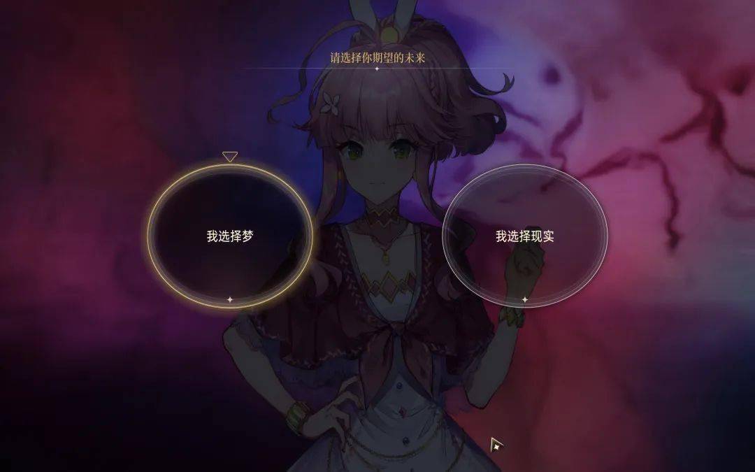 在游戏尾声,玩家将决定入梦或是留在现实。可惜的是,在这款大体量文字冒险游戏里,玩家能做出的剧情选择只有寥寥几处,上一次选择还是在故事开篇时思考要喝什么口味的茶饮,中间只能被动观看文字加美术的演出