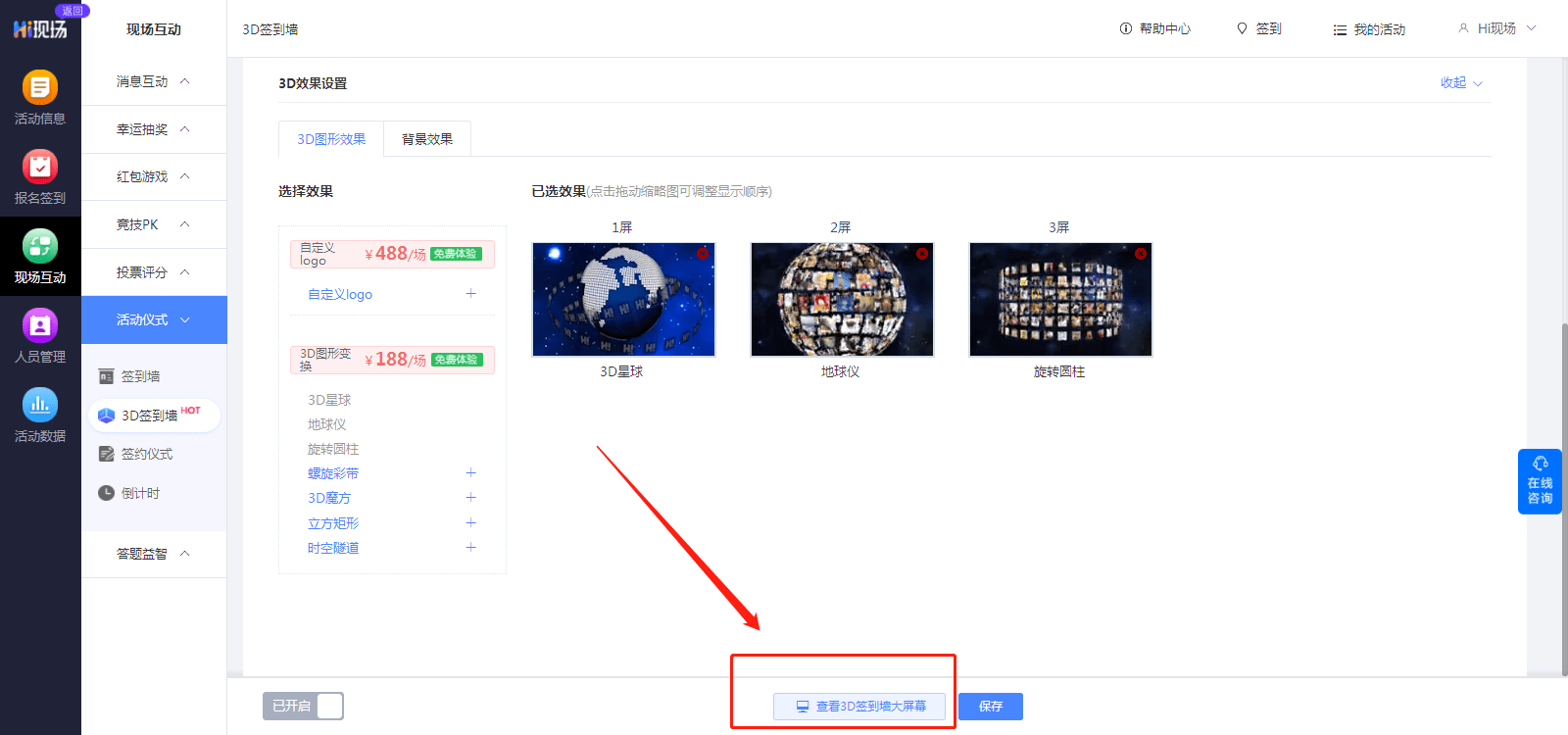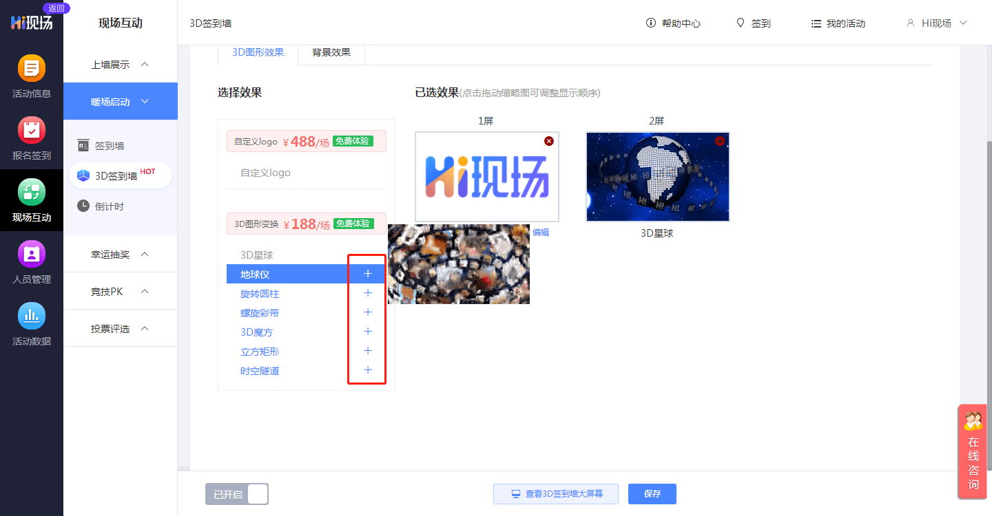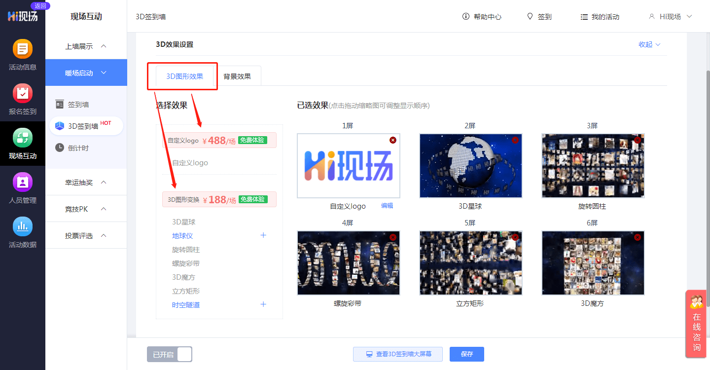 下面以hi现场互动系统中的3d头像抽奖为例子,给大家演示一下制作流程: