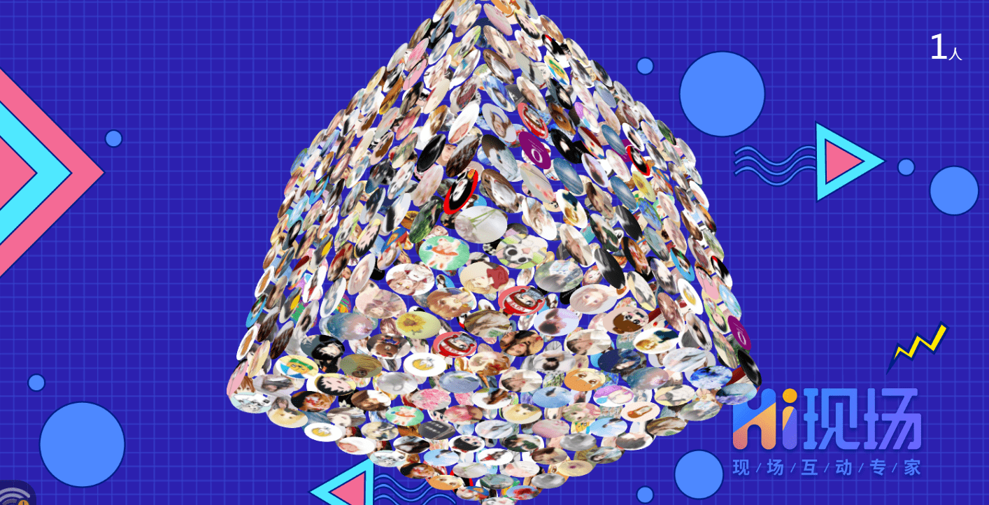 参与者微信扫码,完成签到后头像展示在大屏幕端,排列展示或形成图形