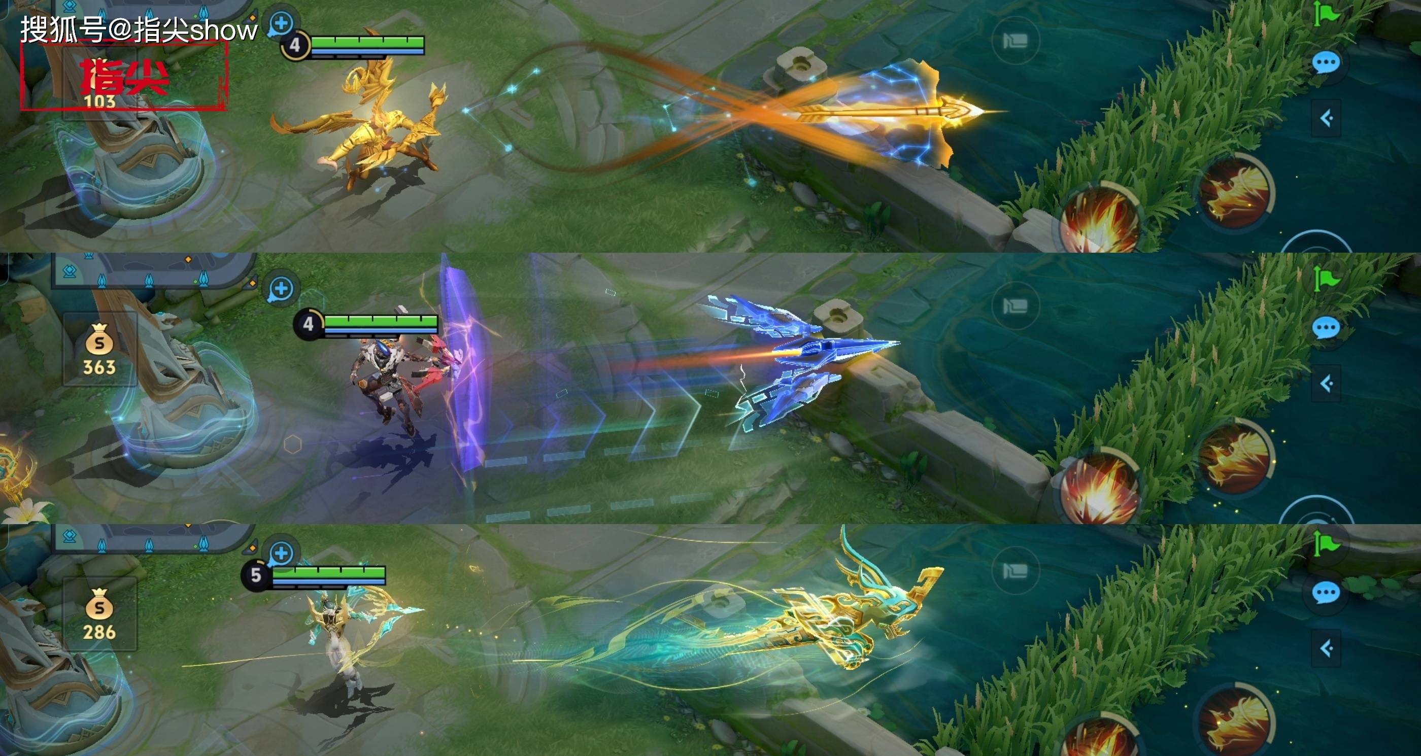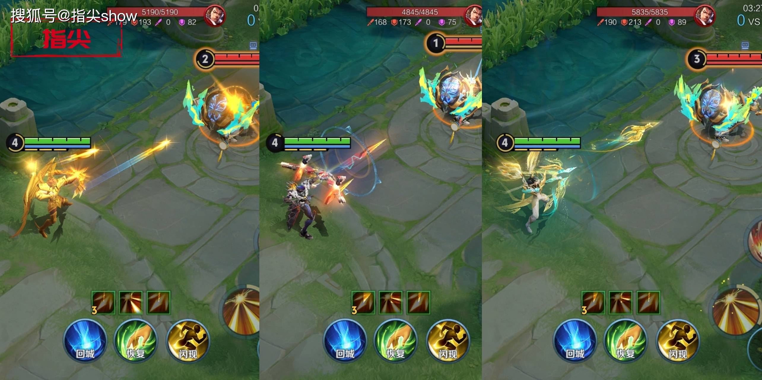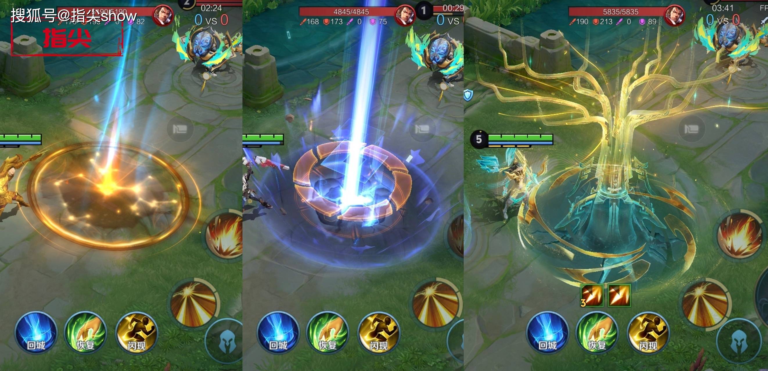 命中的特效,我觉得也不需要过多解读,单从特效来看,新皮肤简直是一骑绝尘,特效更清晰,方便队友去观察,对比另外两款,差距过大。