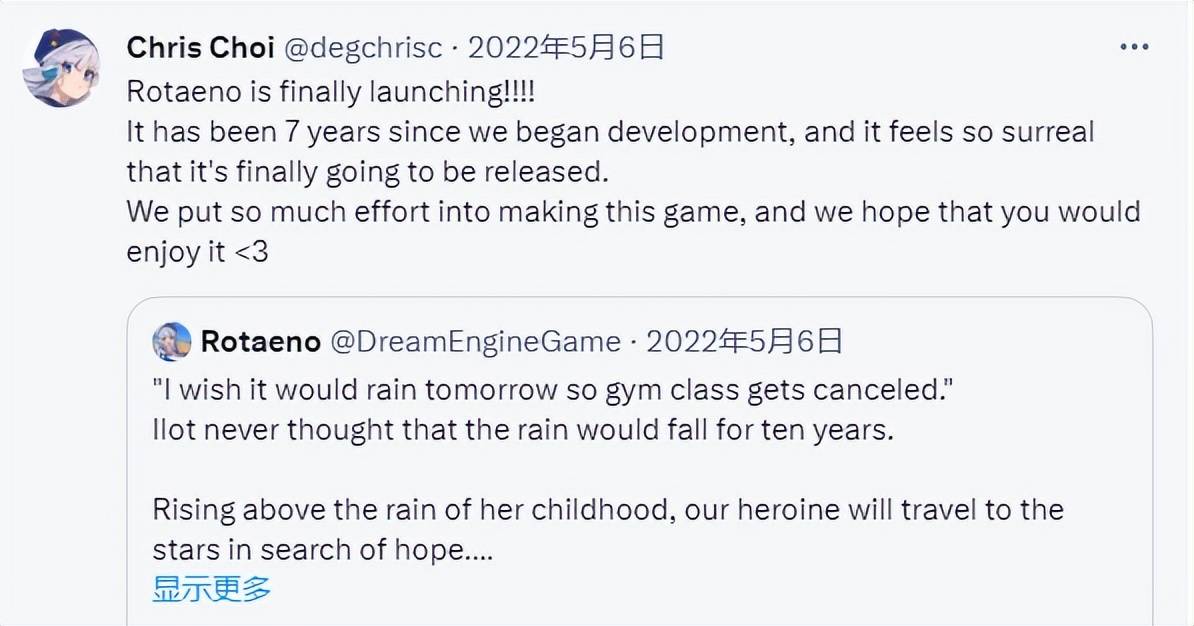 在游戏评论区不少玩家表示从国际服就已入坑。而《旋转音律》国际服在2022年5月发布时,Chris曾表示“开发七年,终于上线了”。