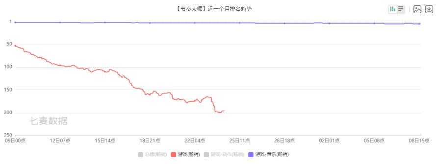 上个月,关服两年的《节奏大师》再次开启公测。相较此前版本,游戏取消了体力条限制,付费模式为月卡解锁更多歌曲,此外新增了“看广告赢奖励”的功能。不过据七麦网,目前游戏榜已滑出畅销榜前200名。