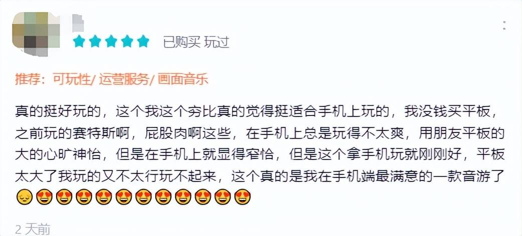 从整体来看,目前玩家可跟随主线解锁42首曲目,其余曲包则需要购买。根据玩家反馈,曲库数量及风格符合音游玩家的需求,游戏玩法无论对萌新玩家或音游大佬也都十分可口。对于玩家来说或许有些“初见杀”和不顺手,但在熟悉后,很多玩家表示代入感极强、很上头,享受手持手机狂飙的快感。