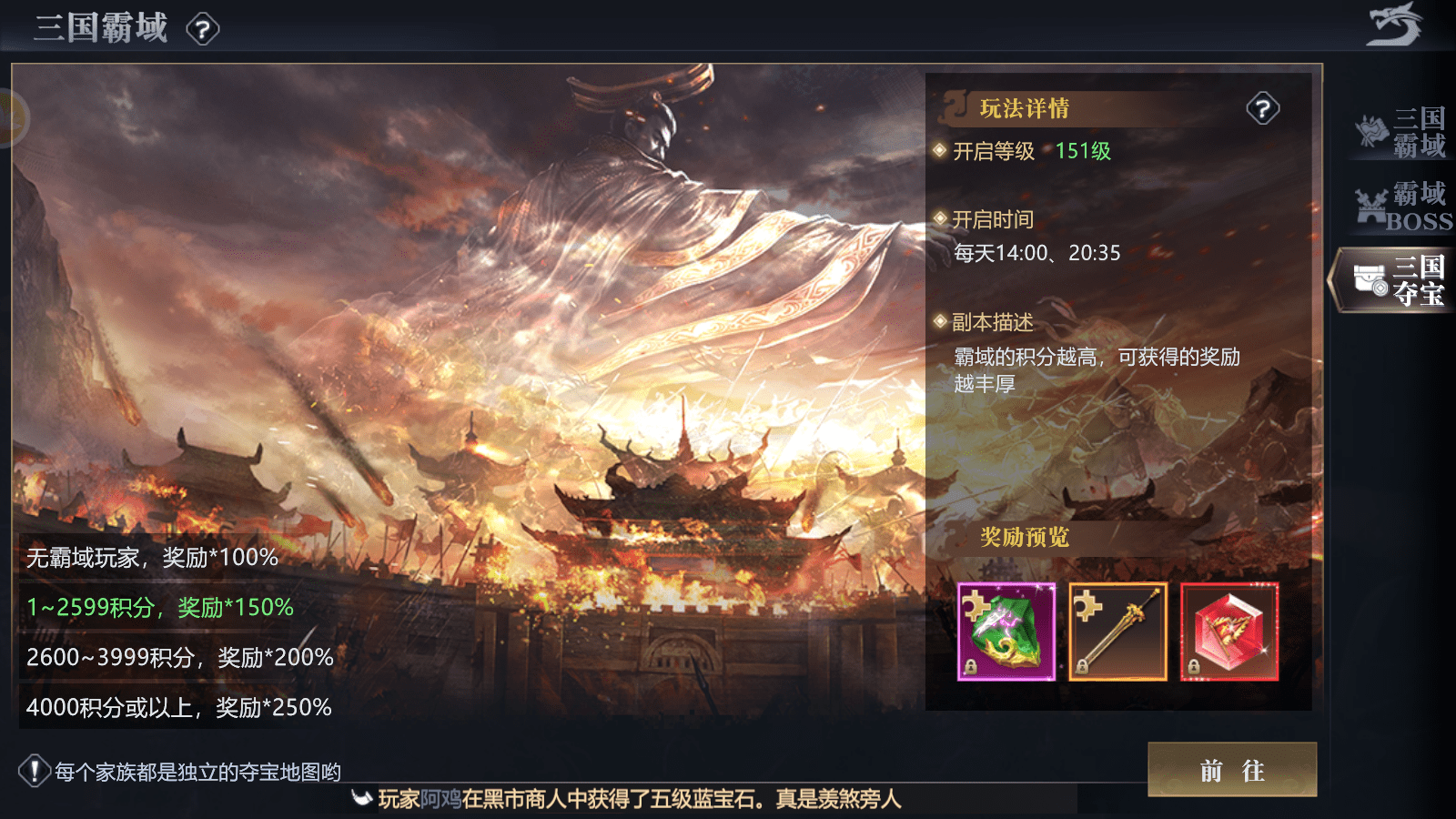 活动描述:根据霸域积分的高低,参与玩家可获得丰厚奖励。