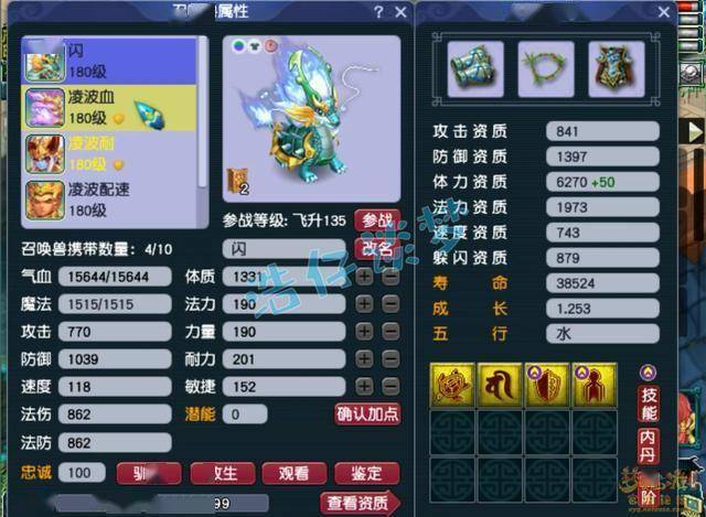 4技能净台龟速血宠龙龟,体资养出了加号,赐福了两个超级技能,套装带的是高神。