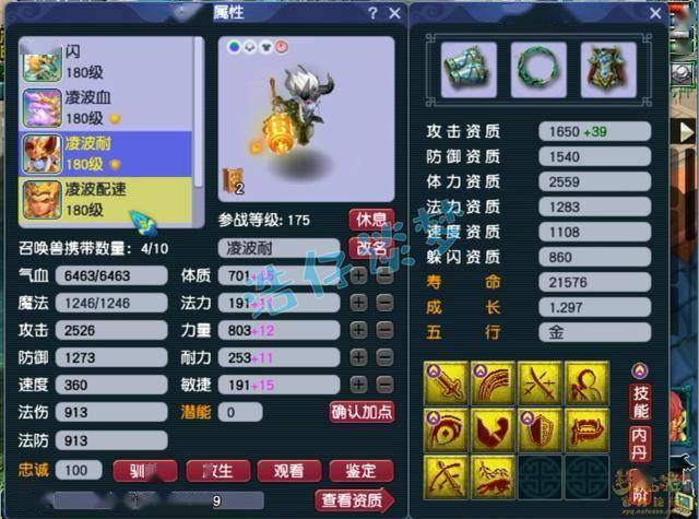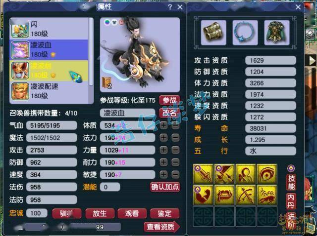 好了,这个175级凌波城展示完毕,10锻左右的装备加身。宝宝攻宠、血宠,和法宠都有,适配各种难度任务,这种号的硬件不算特别高端,但是刷难度任务也都够用了。拿来养老还不错,各位觉得呢?