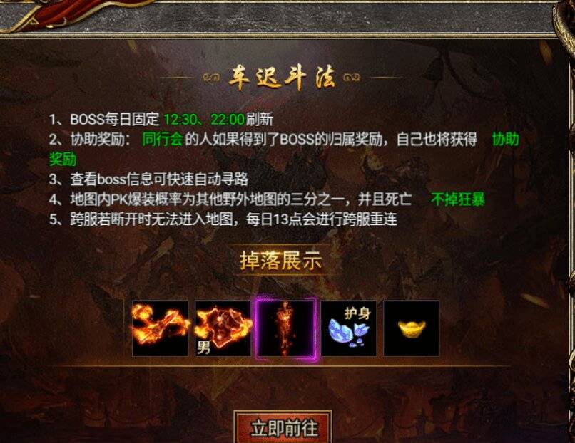 全服共斗: 所有玩家都有机会对这三位BOSS发起攻击。成功打败BOSS后,可以获得丰厚的奖励,其中包括18转或以下的装备、护身碎片、魔尊勋章碎片、声望、元宝等。