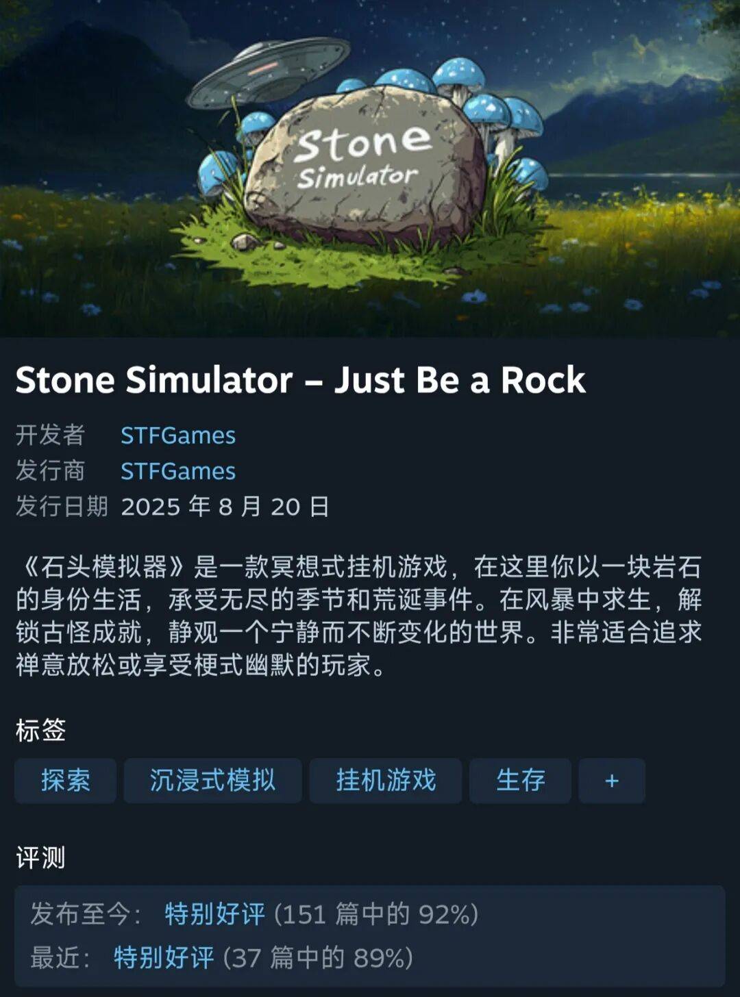 游戏内容很简单,甚至可以说是乏善可陈——那就是让你摆烂看风景,挂机冥想,偶尔可以看看石头的吐槽。
