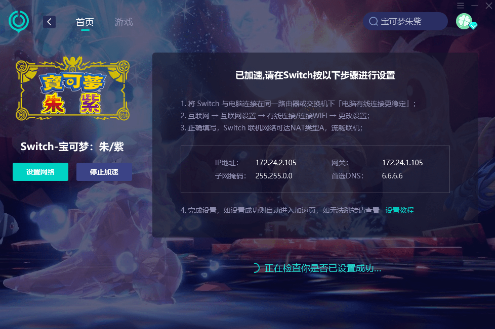 二:加-速后在switch上按步骤设置好即可得到稳定网络连接,流畅游玩《宝可梦朱紫》