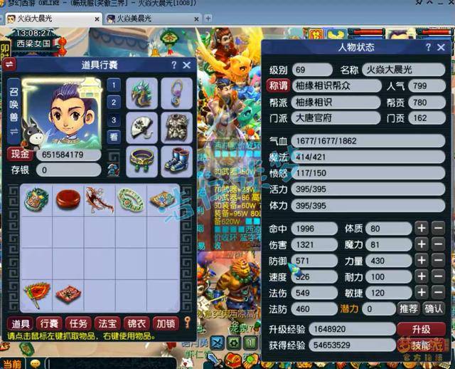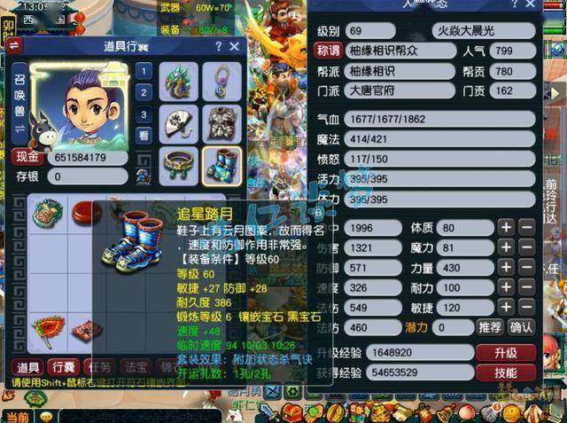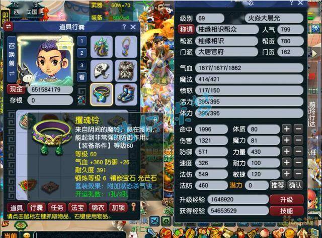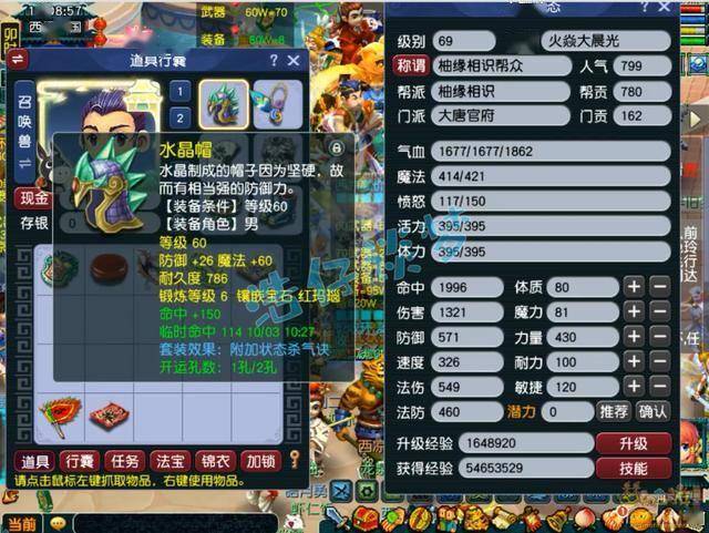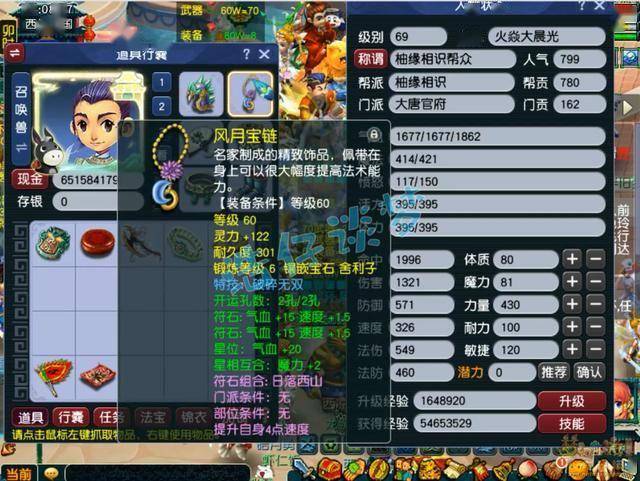 69级大唐没打临时符的面板属性,畅玩服目前是没有灵饰的,所以面板看上去并不算太亮眼。