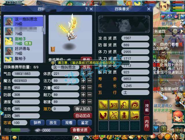 9技能血法雷鸟人,目前畅玩服是没有须弥宠的,所以这种宝宝已经非常顶级了。