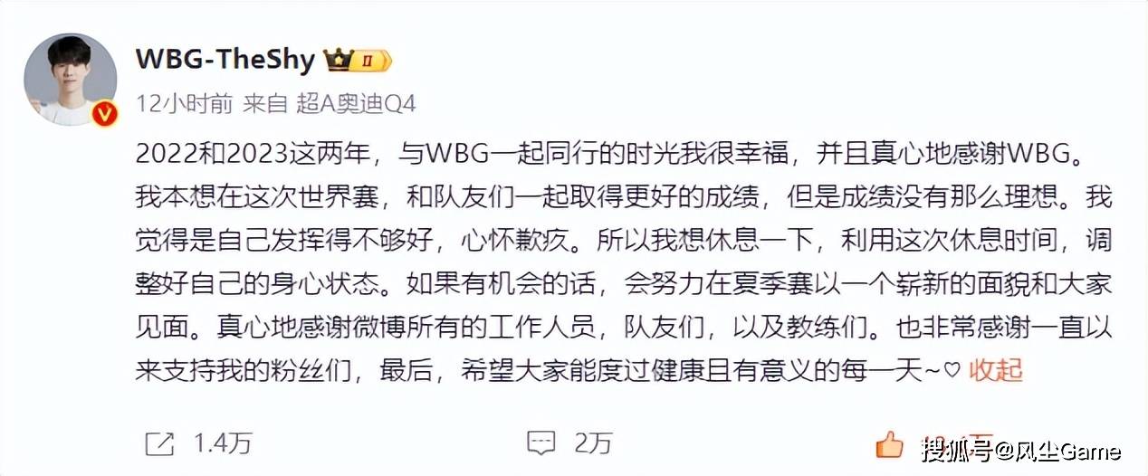 目前WBG官博已经沦陷,无数人随着TheShy的离队脱粉,各种嘲讽、讨伐、谩骂的言论,已经席卷评论区、超话,WBG在舆论压力下,不得不对战队超话进行禁言,而针对近期的节奏,战队老板石头赶路,也在TheShy离队后,发微博进行了回应,咱们来看看他说了啥。