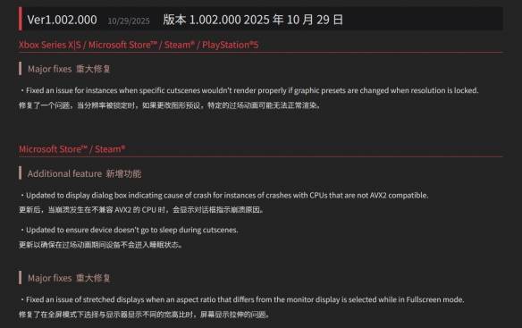 今日,《忍者龙剑传4(NINJA GAIDEN 4)》Ver1.002.000版本更新上线,此次更新没有特别大的改动,主要针对游戏中的一些bug进行修复,一起来看下吧。