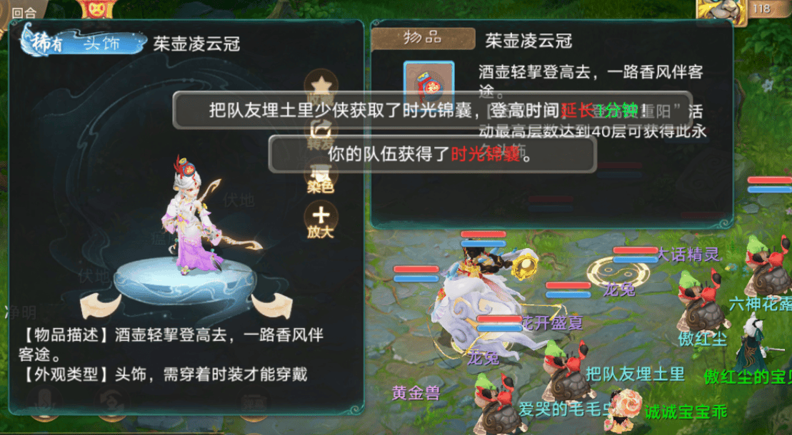 以上就是今天所有内容,大话手游2025重阳节活动攻略,相信看完这个大家都会有所了解,有时间的话可以把活动做一下,拿一下永久头饰“茱壶凌云冠”和五行材料等奖励。最后祝各位少侠登高揽胜,满载而归!