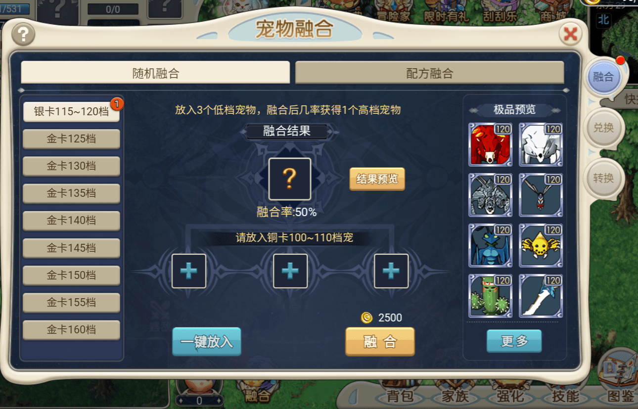 还有啊,不要老是想着去融合宠物,那就是这个游戏挖的坑,前期宠物够用就行了,等后期资源充足、真正需要更强大的宠物的时候,再融合也不迟。